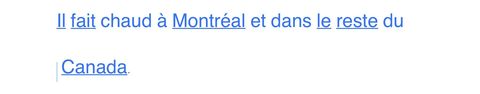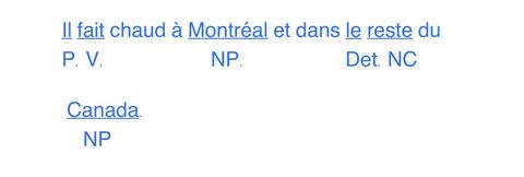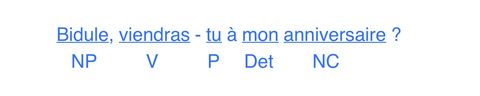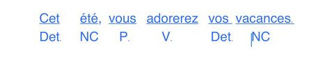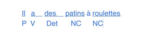 | A quelle classe grammaticale (NC, NP, V, Det ou P) appartiennent les mots soulignés dans la phrase suivante ? | |