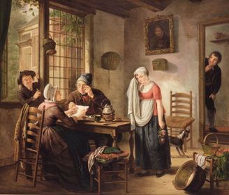 | ADRIAAN DE LELIE "De Liefdesbrief", 1785-1820 Genrestuk : Kleinburgerlijke Hollandse leven. | |