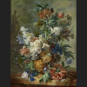 | JAN VAN HUYSUM "Arcadisch landschap met borstbeeld van Flora", 1724-1725 Romantisch : archaïsche landschap, natuur. | |