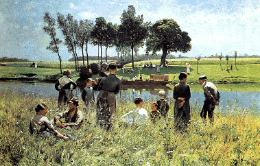 | EMILE CLAUS "De Picknick", c. 1887 Impressionisme : Luminisme (volle buitenlicht), Vlaamse landschap. | |