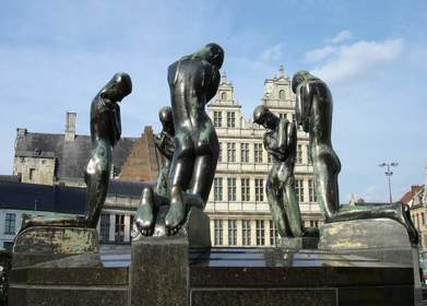 | GEORGES MINNE "De Fontein met de geknielde jongelingen", c. 1898 Eerste Latemse Groep (symbolisme) : symbolisme, stilering, zielsstemming. | |