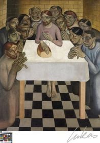 | GUSTAVE VAN DE WOESTYNE "Het Laatste avondmaal", 1927 Eerste Latemse groep : expressieve deformatie, religieuze bewogenheid, kubistische invloed. | |