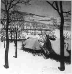 | VALERIUS DE SAEDELEER "Winter in Vlaanderen", 1927 Eerste Latemse groep : symbolisme, eenzaamheid, religieuze bezieling in winterlandschap (somber en droevig). | |