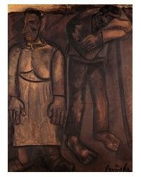 | CONSTANT PERMEKE "De Verloofde", 1923 Tweede Latemse Groep (expr.) : Monumentale en donkere man >< lichte vrouw, armen tonen dat ze verloofde zijn (expressionisme // verbondenheid). | |