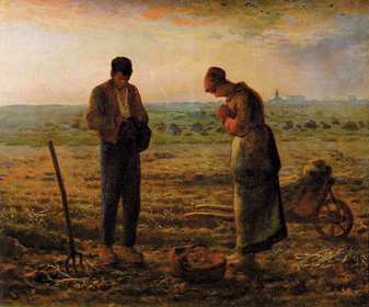| JEAN-FRANCOIS MILLET "L'Angélus", 1857-59 Realisme met romantische idealisering, sereen en harmonisch door landschap, rust. | |