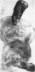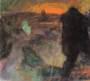 | CONSTANT PERMEKE "De Vreemdeling", 1916 Tweede Latemse groep (expr.) : geen details, monumentalisme, drukt de essentie van 'vreemdeling' direct uit. | |