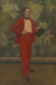 | HENRI EVENEPOEL "De man in het rood (De schilder Paul Baignères)", 1895 Felle kleuren (// fauvisten), monumentale compositie, toch traditioneler (weemoed). | |