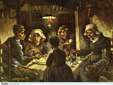 | VINCENT VAN GOGH "De aardappeleters", 1885 Hollandse periode : Calvinistisch, moraliserend, donker, eenvoudige mensen. | |
