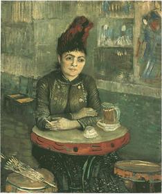 | VINCENT VAN GOGH "Vrouw aan een tafeltje in het café Aux Tambourins", 1887 Parijse periode : Meer licht en heldere kleuren, néo-impressionistische invloeden. | |