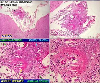 LEPTOMENINGITE TUBERCULOSA : GRANULOMAS INCIPIENTES, NECROSE CASEOSA E VASCULITE NECROSANTE [exemplo de inflamação granulomatosa] | |