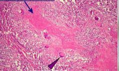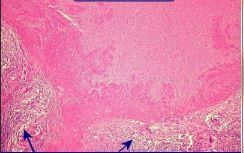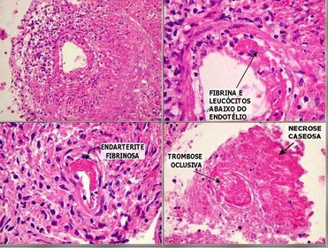 Necrose Caseosa (coagulativa) em destaque, com granulomas apontados pelas setas | |