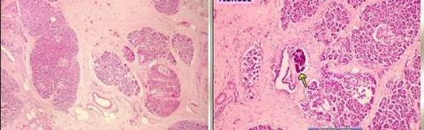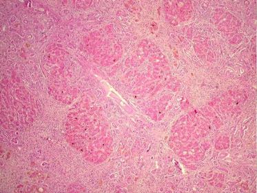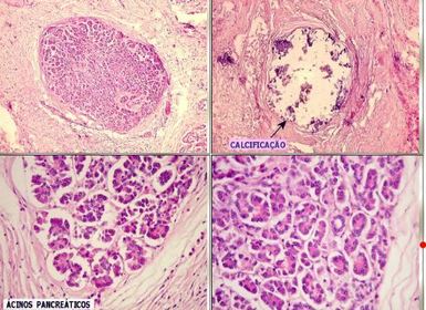 Calcificação e fibrose na pancreatite crônica, como forma de reparo/cicatrização ao parênquima lesado pela inflamação | |