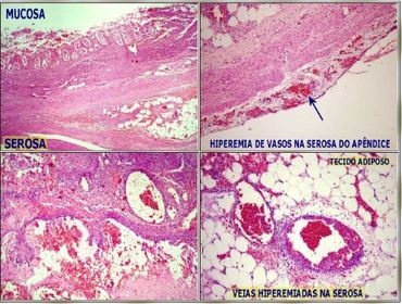 Vasos hiperemiados na apendicite aguda | |