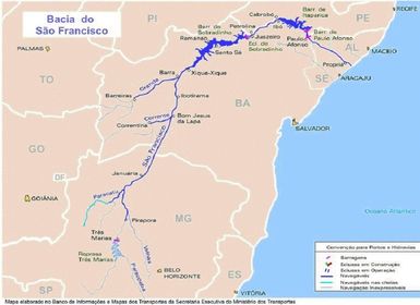 Regiao hidrografica do rio São Francisco | Características A bacia do rio São Francisco é uma bacia hidrográfica inteiramente do Brasil cujo principal rio é o São Francisco, também conhecido como Velho Chico, que percorre 2.830 km. A região abrange terras de 521 municípios, distribuídos em sete Unidades da Federação: Minas Gerais, Bahia, Pernambuco,Sergipe, Alagoas. O rio São Francisco atravessa regiões com condições naturais das mais diversas e tem cinco usinas hidroelétricas. |