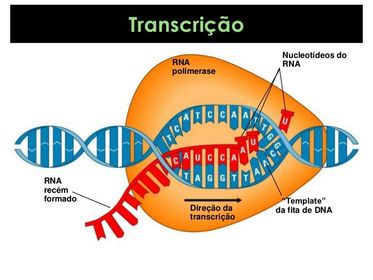 Transcrição | A transcrição consiste na síntese de RNA. Ela é realizada por um complexo enzimático cuja enzima chave é a RNA polimerase, composta de várias subunidades e que realiza a polimerização do RNA a partir de um molde de DNA. |