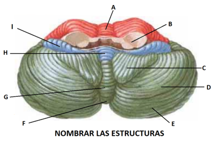 | EL CEREBELO CONSISTE EN: | Dos hemisferios cerebelosos unidos por el vermis estrecho y medial. |