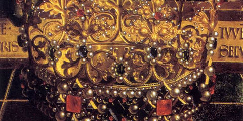| JAN VAN EYCK "Het Lam Gods" (detail: kroon) 1432 (15de eeuw) => Vlaamse primitieven: analytische perfectie => Analystisch realisme ("lustro") | |