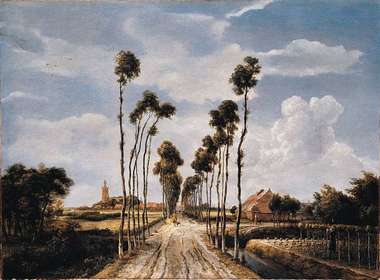 | MEINDERT HOBBEMA "Het laantje van Middelharnis" +- 1689 (17de eeuw) => Calvinistisch: sterke constructie (lijnen van de straten), kalere bomen | |
