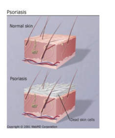 La Piel: Epidermis Psoriasis • Condición crónica en que este movimiento de células a la superficie ocurre mas rápido.