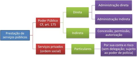 | Conceitue prestação de serviços de forma direta. | o serviço é prestado pela Administração Pública, direta ou indireta. |