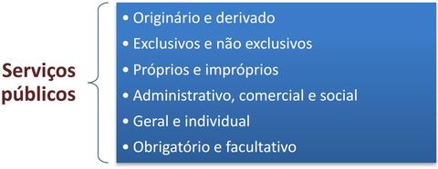 | Observação!!!! | Para parte da doutrina, a definição de serviços públicos próprios é a mesma que a de serviços públicos exclusivos. Assim, também é certo afirmar que serviços públicos próprios são aqueles que atendem às necessidades coletivas e que o Estado executa tanto diretamente quanto indiretamente, por intermédio de empresas concessionárias ou permissionárias. |