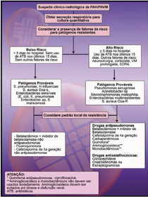 | Qual esquema de tratamento empírico pode ser utilizado nos pacientes com alto risco para patógenos potencialmente resistentes? E quais as opções de tratamento para S. aureus Oxa-R? | Deve incluir agentes antipseudomonas, podendo-se ou não associar um agente antiestafilocócico. Glicopeptídeos (Vancomicina e Teicoplamina) e as oxazolidonas (Linezolide) |