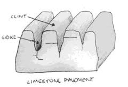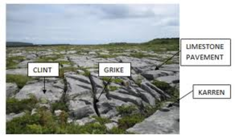 | Grike = Crack/Gap in the rock Clint = Flat resistant part of the rock | |