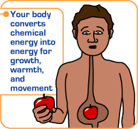 | Explain Chemical energy and give an example supporting your explanation | Chemical energy is energy stored in substances. For example, this energy is released by your body when you digest food. |