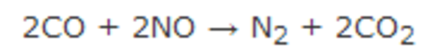 | What is the word equation for a catalytic converter? | Carbon monoxide + Nitrogen oxide --> Nitrogen + Carbon Dioxide |