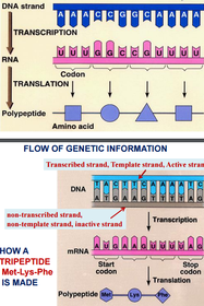 How does information in DNA is given to make proteins? Takes place via TWO processes: 1. Information in DNA is first TRANSCRIBED INTO THAT OF RNA 2. Information in RNA is then TRANSLATED INTO PROTEINS (Nucleic acid language to Protein language) – In eukaryotic cells, • Transcription occurs in the nucleus. • Translation occurs in the cytoplasm
