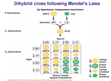 | 2. Mendel’s Law of Independent Assortment | Factors for different characteristics (different gene pairs) are inherited independently from one another Occurs during meiosis I: Independent assortment of homologous chromosomes in metaphase 1 |