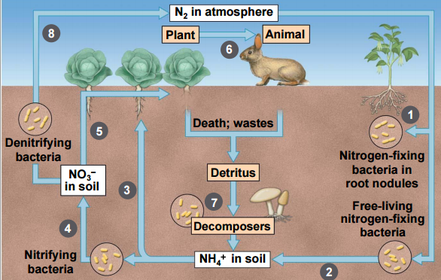 | Nitrogen has two abiotic reservoirs: | 1. the atmosphere and 2. the soil |