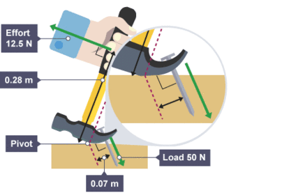 | Give an example of when a lever becomes a useful material in some cases. | Using the claw of a hammer to pull a nail out of a wood, the hammer acts as a lever which reduces the size of the effort needed to pull out the nail.This makes the task much easier than doing it with your hand. |