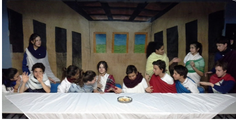 Nosotros recreamos un cuadro del Renacimiento llamado "La Última Cena". | Nos encargamos de la escenografía, el vestuario, los personajes y la música. |