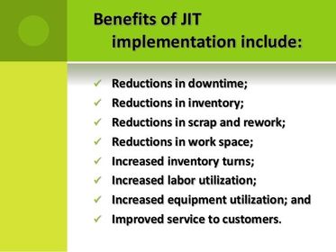 Just-In-Time (JIT) | inventory strategy companies employ to increase efficiency and decrease waste by receiving goods only as they are needed in the production process, thereby reducing inventory costs. This method requires producers to forecast demand accurately. |