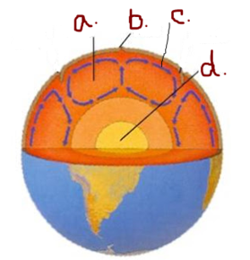 | a= Mantle, b= Crust, c= Convection Currents, d= Core | |