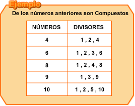 | Número compuesto | Un número es compuesto si tiene más de dos divisores. |