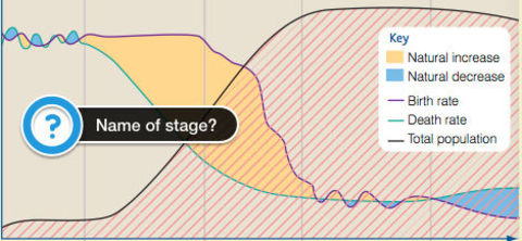 | DTM Stage 3 – Late Expanding | The birth rate falls rapidly, the death rate is low and fluctuating, the total population is still increasing and the natural increase is decreasing. Examples of this are found in most places around the world |