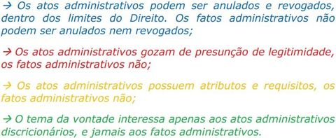 | quais as diferenças entre fatos administrativos e atos administrativos ? |