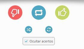 | Ao final, você poderá ver o seu resultado e também recomeçar o baralho. E é aí que entra a nova função de "Ocultar os acertos", para que você possa revisar apenas as cartas que você errou. | |