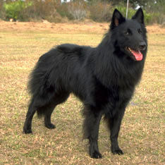 BELGIAN SHEEPDOG 22"-26" COMBINATION/SILKY ALL BLACK W/ POSSIBLE LIMITED WHITE ON CHEST, FEET, MUZZLE BATHE AND BRUSH OUT/SAME | |