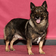 SWEDISH VALLHUND SWEDEN 11½"-13½" DOUBLE COATED SABLE IN GRAY, RED W/ LIGHTER SHADES ON UNDERSIDE OF HEAD, DARK MASK BATHE AND BRUSH OUT/SAME | |