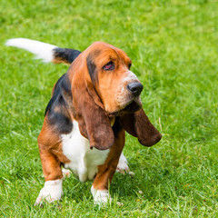 BASSET HOUND FRANCE 13"-14" SHORT/SMOOTH BASE WHITE COLOR W/ MIX OF TANS, RED, AND/OR BLACK FLECKS BATHE AND CURRY BRUSH/SAME | |