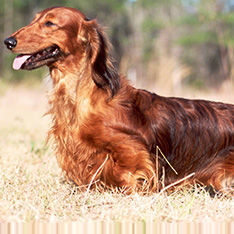 DACHSHUND (LONG HAIRED) EUROPE 7"-11" COMBINATION/SILKY RED, BLACK, TAN, BROWN, FAWN, GRAY BRUSH OUT/MINOR TRIM SAME AS ABOVE | |