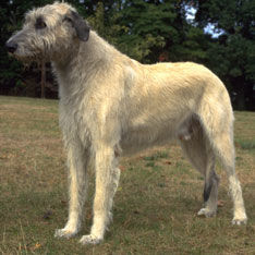 IRISH WOLFHOUND IRELAND 30"-32" MODERATE/WIRY TANS, GRAY, RED, BLACK, CREAM, WHITE, BLACK AND BRINDLED CARD AND HAND STRIP/SAME | |