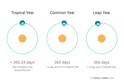 | What is a leap year? | A common year has 365 days and a leap year 366 days, with the extra, or intercalary, day designated as February 29. A leap year occurs every four years to help synchronize the calendar year with the solar year, or the length of time it takes the earth to complete its orbit about the sun, which is about 365¼ days. |