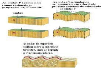 As ondas de corpo ou volume propagam-se através do interior da Terra. |