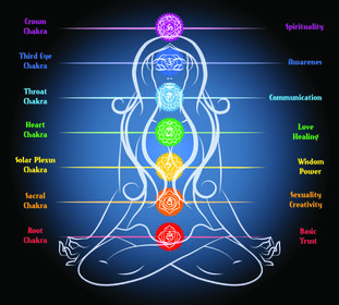 | chakra | “Roda”, “disco”. Os chakras são centros de captação, armazenamento e distribuição da força vital no corpo sutil. O organismo funciona como um receptor de prana cósmico, captando energia do ambiente por meio dos chakras. Existem milhares de pequenos chakras no corpo, marmas, mas, para efeitos da prática, importam os sete principais, ao longo da coluna vertebral e na cabeça. |