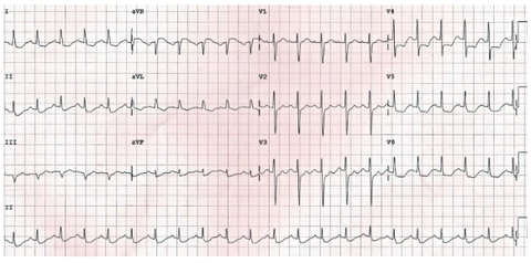 ST depression due to subendocardial ischaemia is usually widespread — typically present in leads I, II, V4-6 and a variable number of additional leads. A pattern of widespread ST depression plus ST elevation in aVR > 1 mm is suggestive of left main coronary artery occlusion. ST depression localised to a particular territory (esp. inferior or high lateral leads only) is more likely to represent reciprocal change due to STEMI. The corresponding ST elevation may be subtle and difficult to see, but should be sought. In this eg - widespread subendocardial ischaemia due to LMCA occlusion http://lifeinthefastlane.com/ecg-library/myocardial-ischaemia/ | |