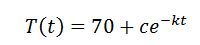 | The temperature of a cup of coffee at time t is given by the equation below. Initially, the temperature of the coffee was 200F. Three minutes later , it was 180F. When will the temperature of the coffee be 150F? |